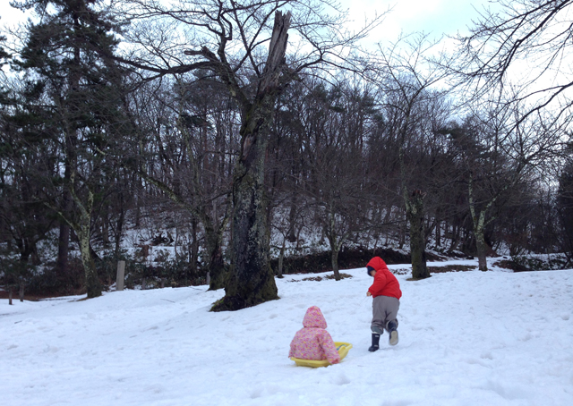 子どもたちは馴染みのない雪遊びで大はしゃぎ。