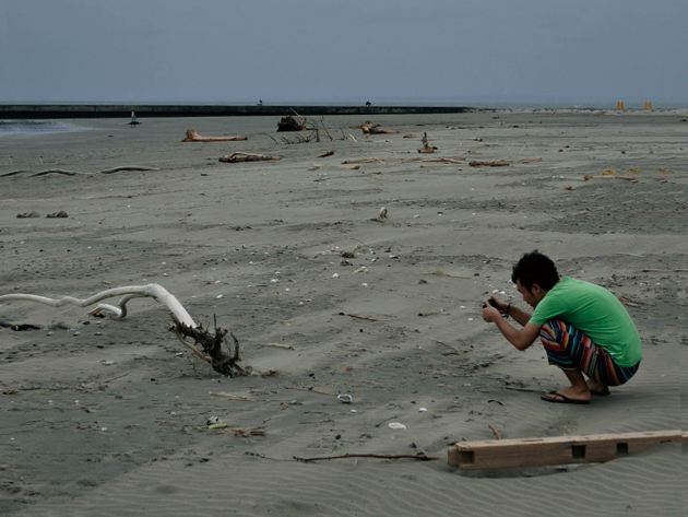 台風で流されてきたと思われる大量の流木 に夢中になってたらno.555に撮られてた。 上の流木を撮る下の自分。。。ちょっとオモシロイ。